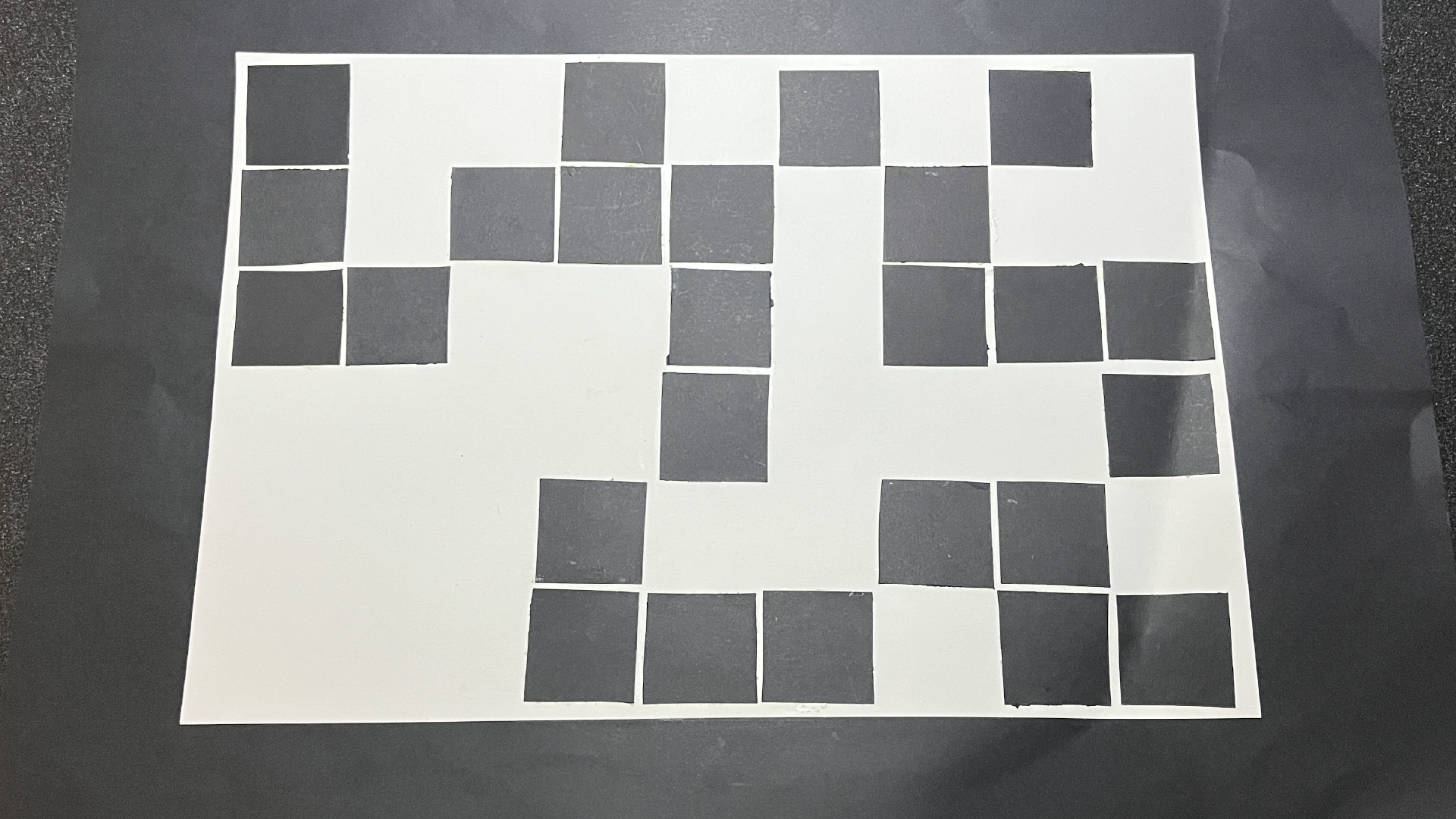 For the first piece, the squares, I laid them out in a seemingly random pattern, but it actually follows the shape of a Glider from Conway's Game of Life, a formation which moves diagonally across the space (in this case, from top right to bottom left). Each smaller 3x3 grid from right to left, and then top to bottom, is from this sequence.