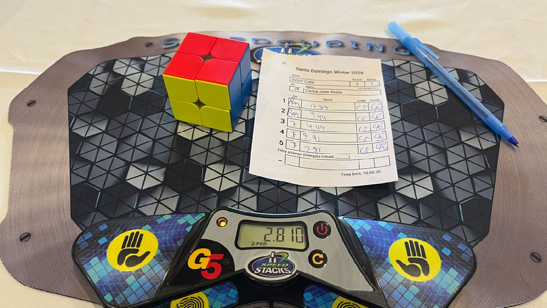 Lastly was Round 2 of 2x2, which went the best out of anything in the competition for me! My times only got better and better every solve, starting with a mid 7.57, but then a 5.44, a 4.47, a fantastic 3.91 (my first sub-4 in competition since Summer 2024), but then I capped it off with a 2.81! This was my first ever sub-3 in a competition, and beats my previous personal record of 3.02 by over a fifth of a second!